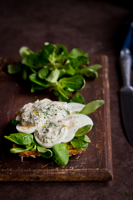 - Aseta peale salatilehed ning selle peale munaviilud.