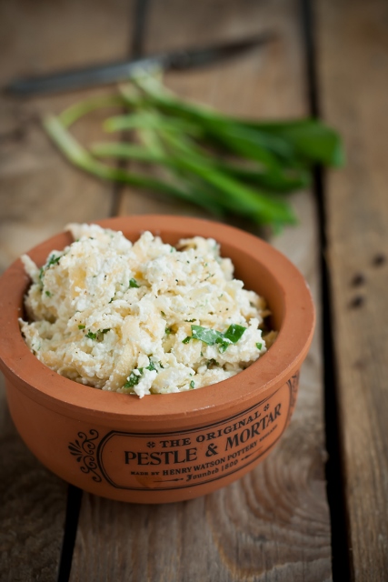 Sega kaalikas ning karulauk omavahel. Lisa segades sisse kodujuust. Maitsesta soola ja pipraga ning serveeri.