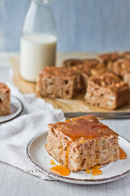 Sega kuivained omavahel. Teises kausis sega keefir, munad ja või. Lisa keefirisegu segades kuivainetele. Koori ja viiluta õunad ning sega need tärklisega. Lisa õunatükid tainale. Pane tainas küpsetuspaberiga vooderdatud vormi (25x18cm) ja küpseta 175 kraadi juures 25 – 35 min.