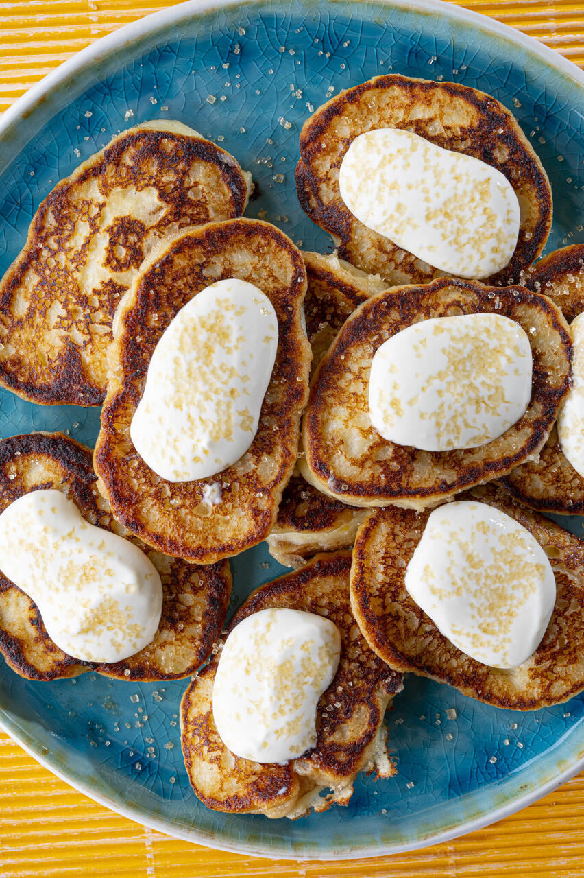 Hõrgud aprikoositükkidega pannkoogid võluvad päikeseliseks iga laupäevahommiku.