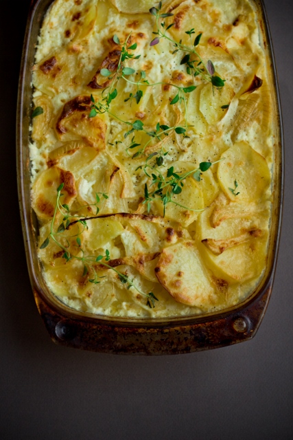 - Aseta sibulaviilud ja kartulid segamini ahjuvormi.
