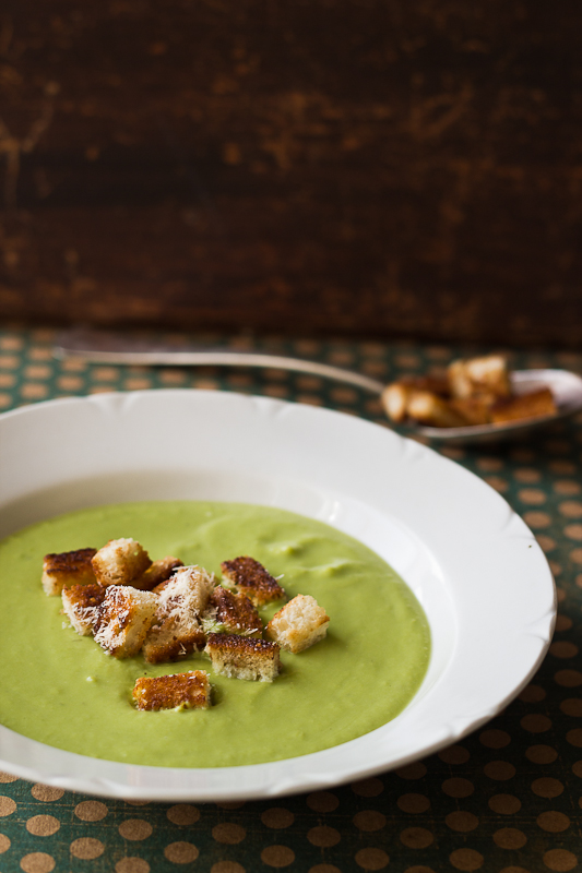 - Maitsesta ning paku suppi koos röstitud saiakuubikute ja parmesaniga.