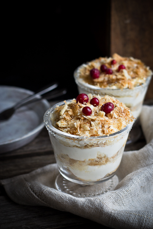 Korda sama tegevust veelkord. Kokku peab tulema 4 tainapurukihti ning 3 kreemi kihti! Kaunista ning serveeri koheselt või lase ööpäevakese jahedas seista!