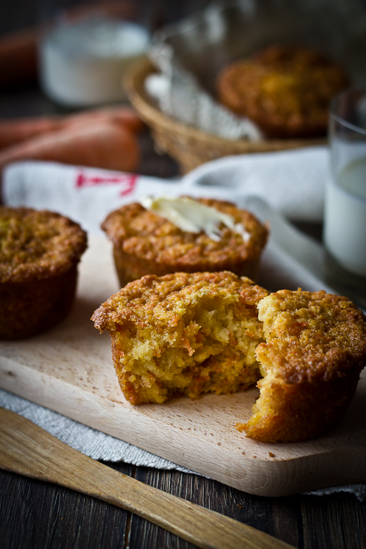 Vahusta või suhkruga. Lisa segades juurde muna. Teises kausis sega kuivained omavahel, lisa segades juurde piim, toorjuust ning jämeda riivipoolega riivitud porgand. Lisa ka eelnevalt kokkusegatud võisegu. Sega nüüd muffinitainast nii vähe kui võimalik. Jaota tainas võiga määritud muffinivormidesse ning küpseta 180 kraadi juures 20-25 minutit.
