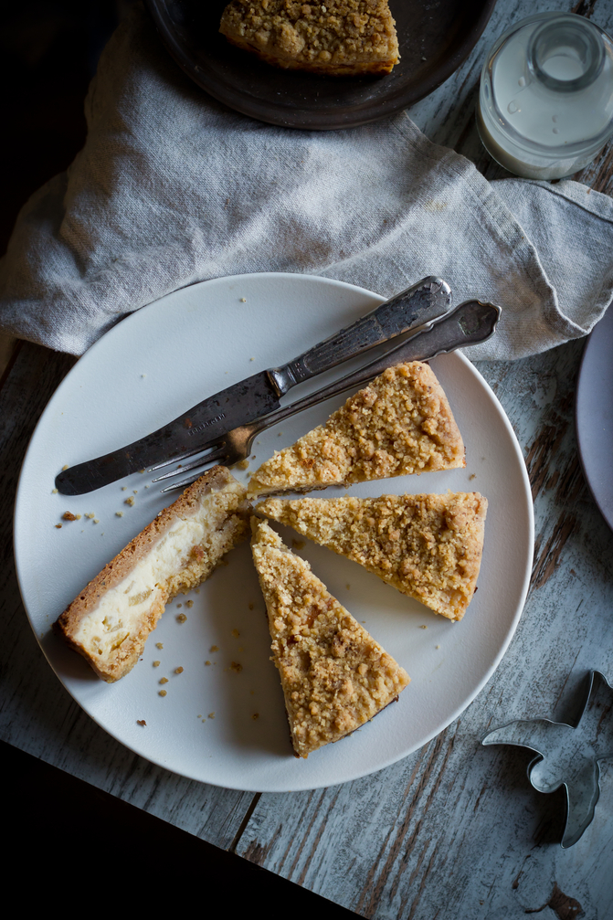 Küpsemise ajal valmista kate: vahusta või suhkrutega ning lisa siis omavahel segatud kuivained. Sega tainast näppude vahel seni, kuni saad puruse segu. Seejärel lõpeta koheselt taina töötlemine, sest vastasel juhul segad antud taina liialt ühtlaseks massiks. Kui kook on 20 minutit ahjus küpsenud, lisa sellele purusegu ning küpseta veel 30 minutit.