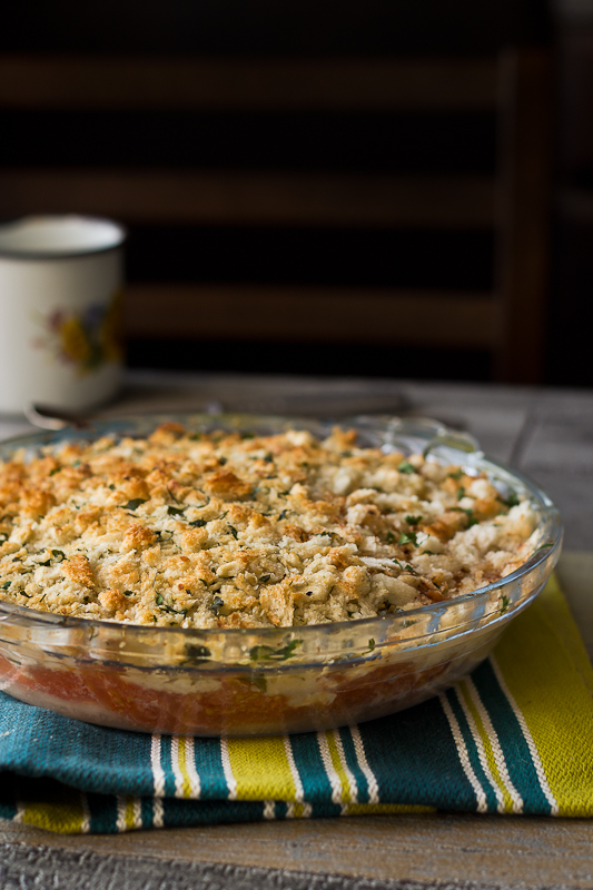 - Aseta vormi kalafileed, maitsesta soola ja pipraga, selle peale aseta tomativiilud, selle peale määri toorjuust.