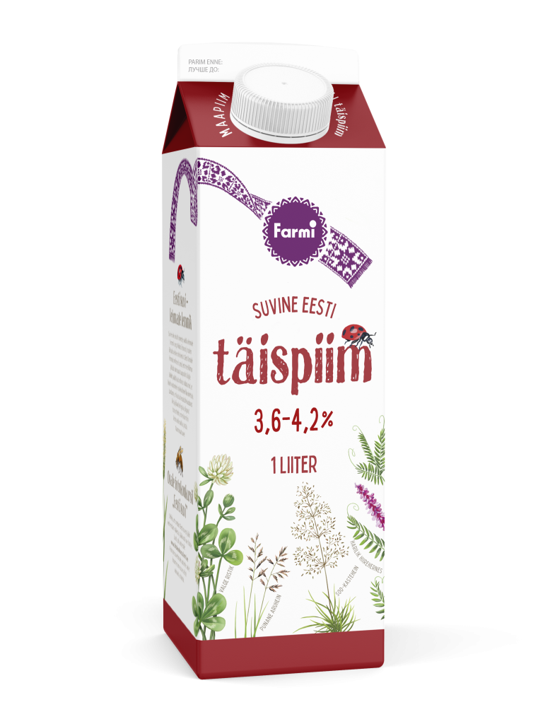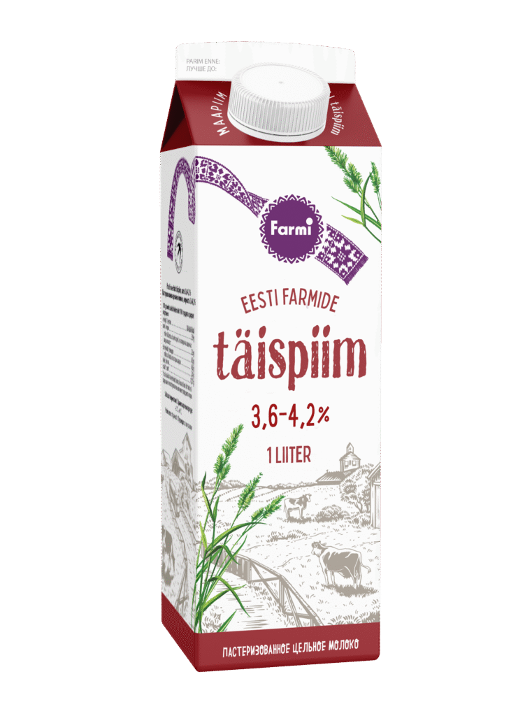 Пастеризованное цельное молоко, жирность 3,6-4,2%, 1 л
