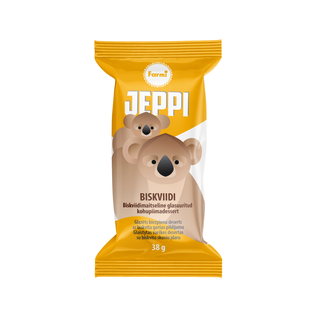 JEPPI glasuuritud kohupiimadessert biskviidimaitselise kreemiga, 38 g