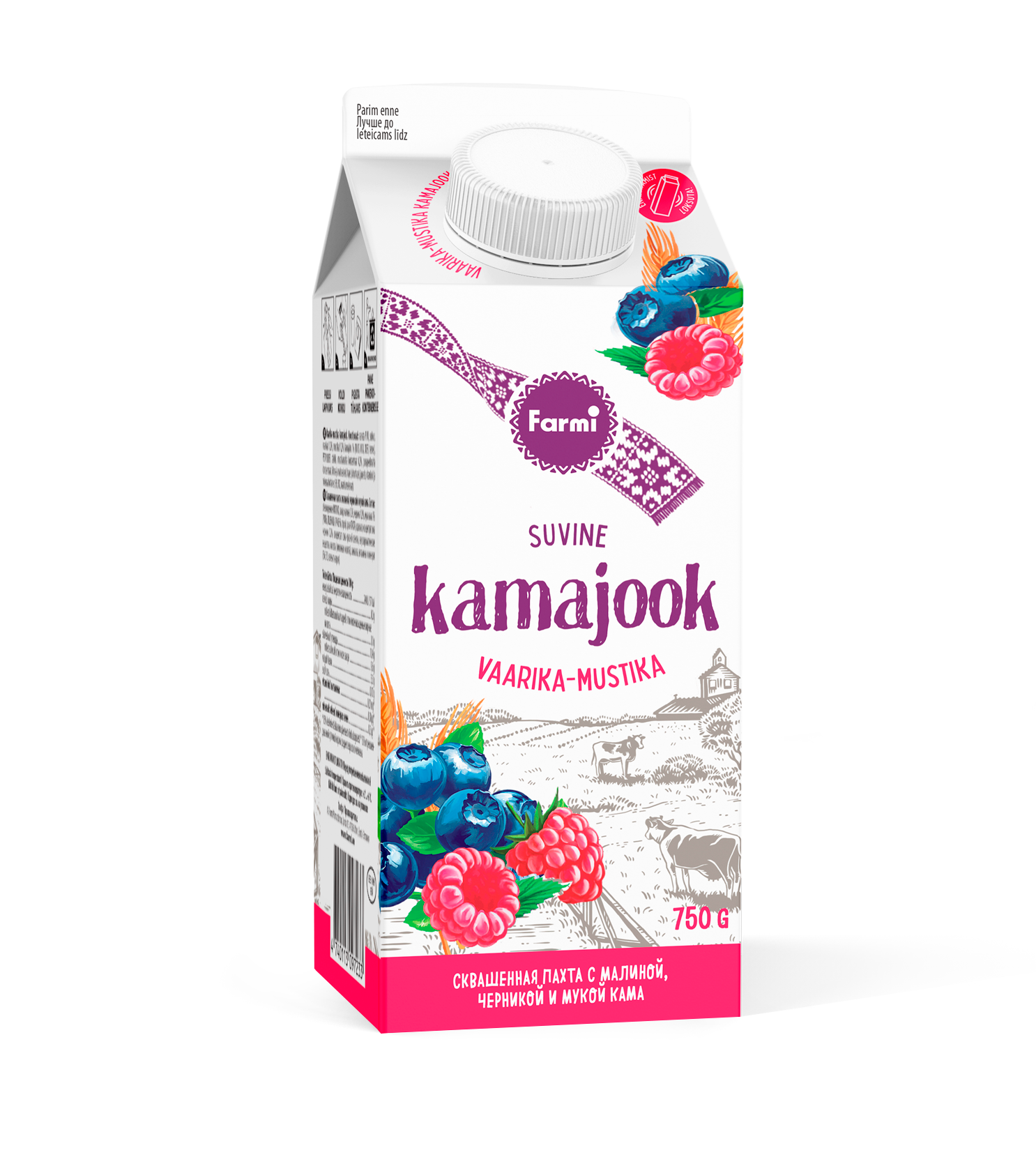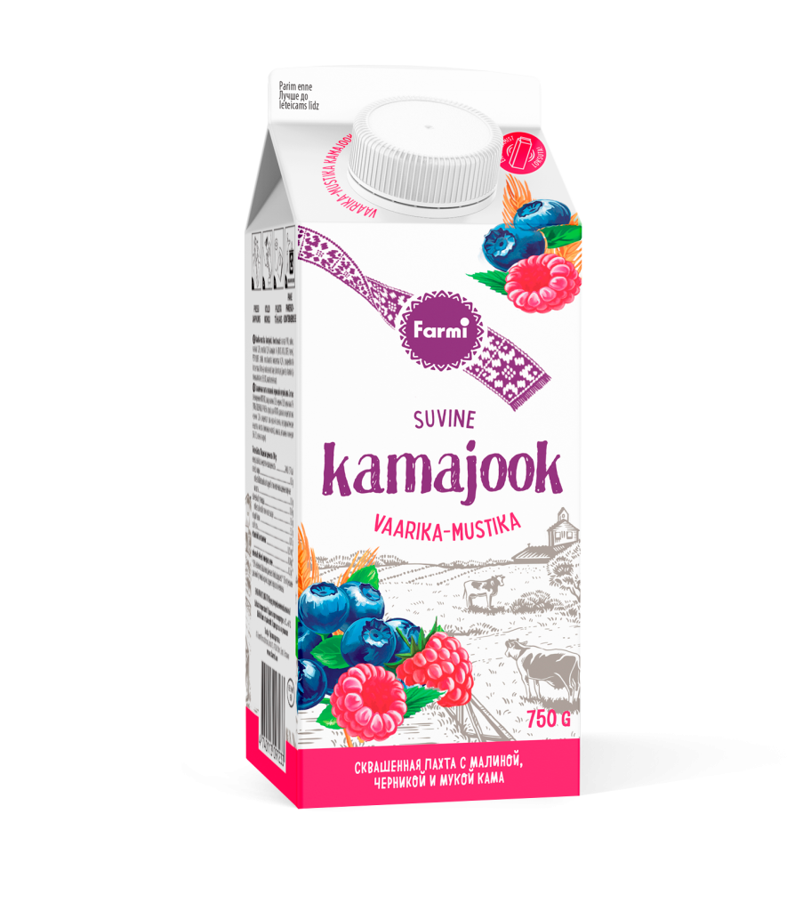 Rasvata PIIM, suhkur, vaarikad 1,2%, mustikad 1,2%, kamajahu 1% (rukis, nisu, oder, hernes), PETIPULBER, tärklis, mustikamahla kontsentraat 0,2%, punapeedimahla kontsentraat, lõhna-ja maitseained, hape (sidrunhape), juuretis.