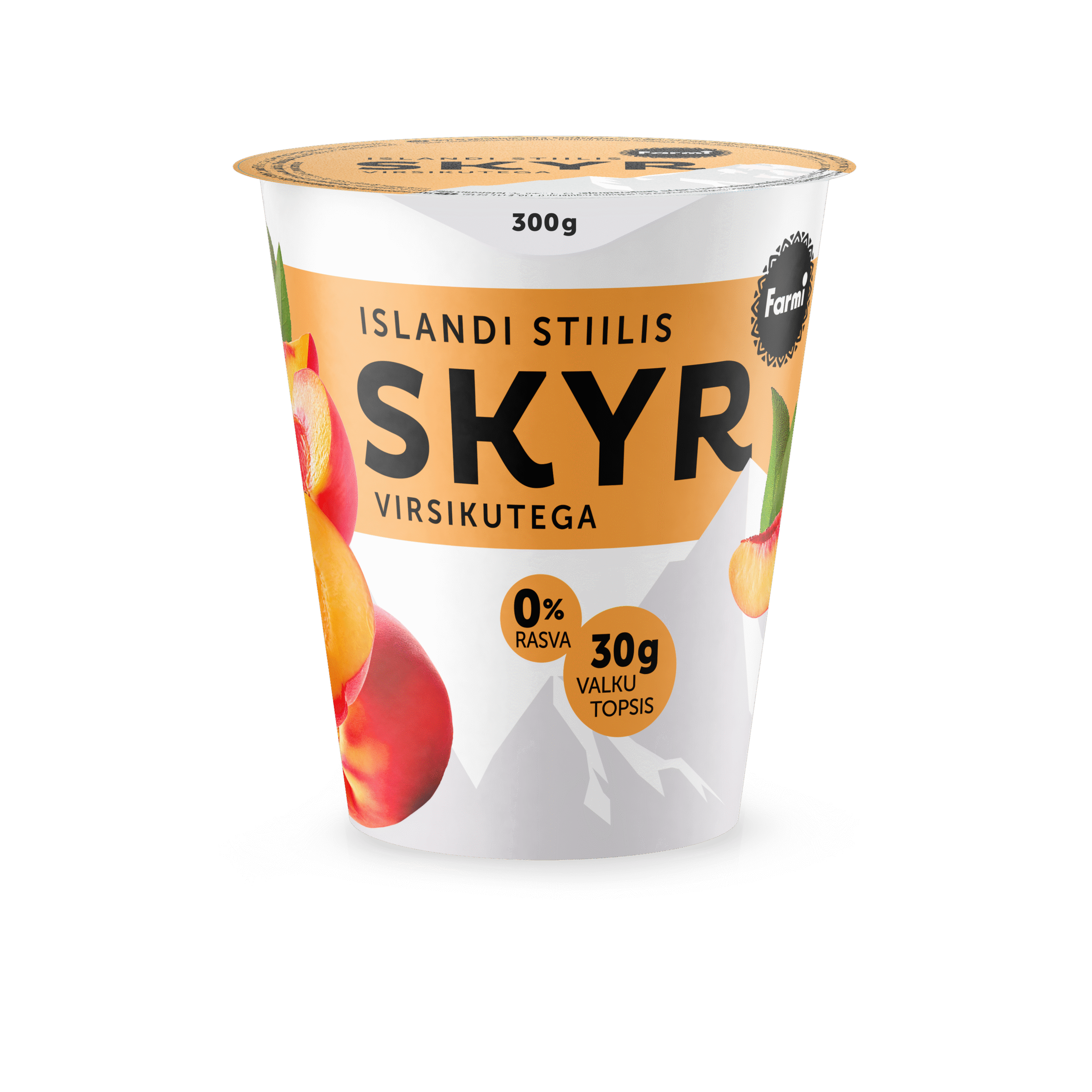 SKYR 88% (rasvatu PIIM, juuretis), virsikumahl mahlakontsentraadist 4,2%, virsikud 3,5%, suhkur, modifitseeritud tärklis, looduslik lõhna- ja maitseaine, paksendaja (pektiin), porgandikontsentraat, happesuse regulaatorid (E330, E331, E333).