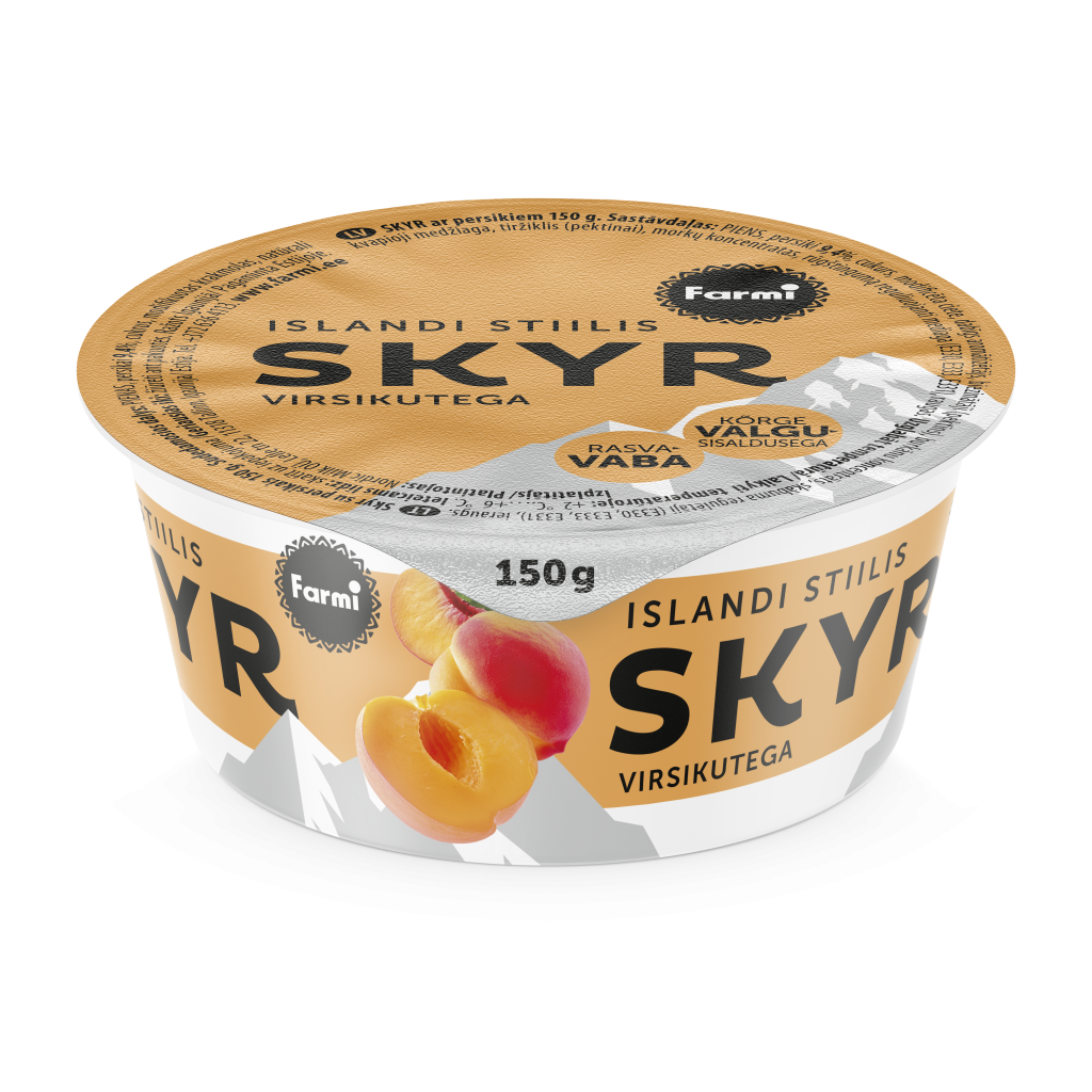 Pastöriseeritud rasvatu PIIM, virsikud 9,4%, suhkur, modifitseeritud tärklis, looduslikud virsiku lõhna- ja maitseained, porgandikontsentraat, paksendaja: pektiin; happesuse regulaatorid: sidrunhape, kaltsiumtsitraat, naatriumtsitraat; juuretis.